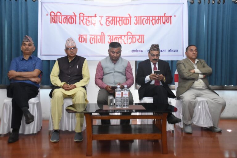 कार्यक्रममा वरिष्ठ अधिवक्ता डा. दिनेश त्रिपाठीले सरकारको कूटनीतिक ढिलाइलाई “असफलताको नमूना” भन्दै तीव्र आलोचना गरे।